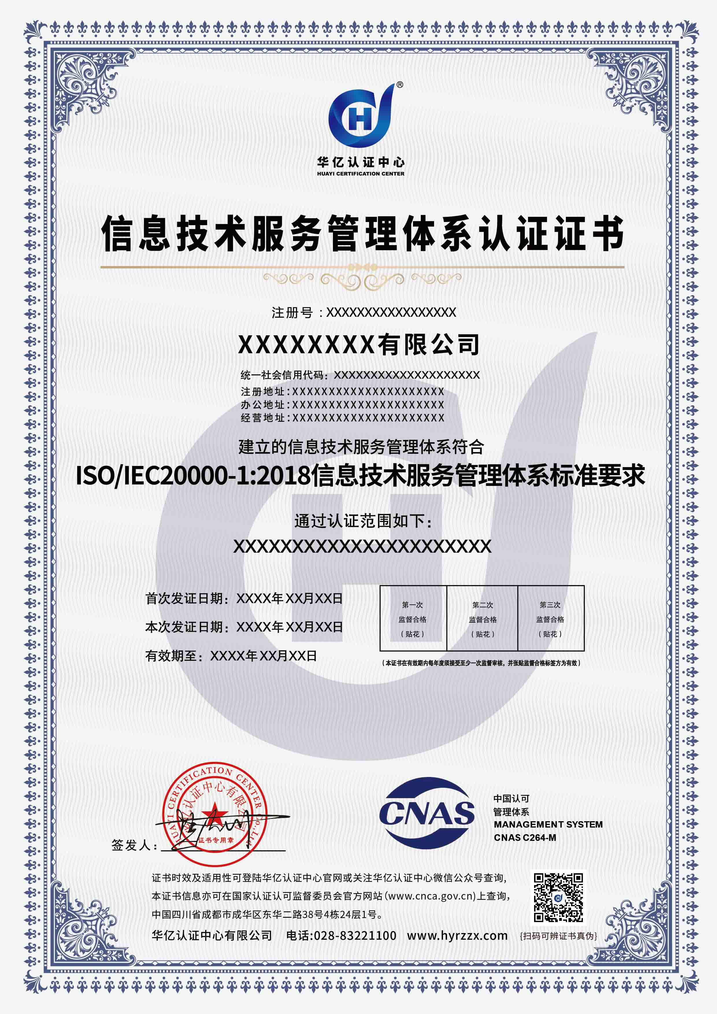 信息技术服务管理体系证书